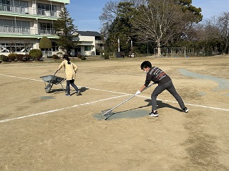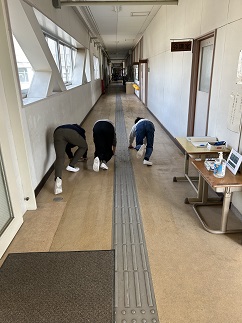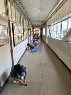 午後、6年生が廊下や階段などを磨いたり、運動場に砂を置いたりしてくれました。今までお世話になった学校をきれいにし、下級生がこれからも気持ちよく過ごせるようがんばってくれました。息を切らしながら一生懸命廊下をふいていました。6年生の気持ちがとても嬉しいです。ありがとう。