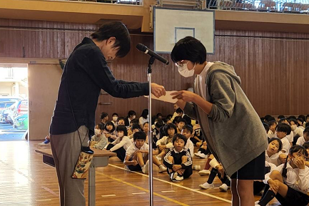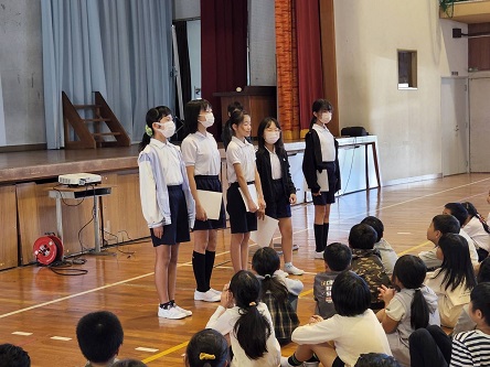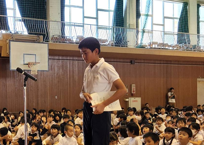 後期児童会役員、代議員、学級委員、委員長、計60人の子どもたちを任命しました。名前を呼ばれたときの返事から、子どもたちのやる気が伝わってきます。よろしくお願いします!