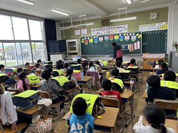 1限目、1年生の教室を見に行くと、みんな静かに先生の話を聞いていました。聞き方名人の1年生です!