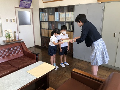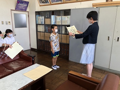 本当は、たくさんの友だちの拍手を受けてほしかったのですが、校長室での表彰です。