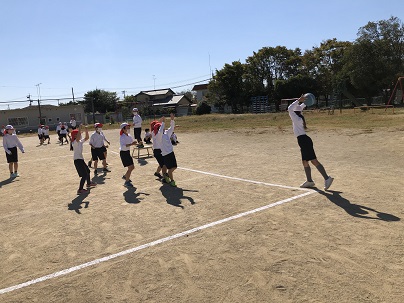 3年生の体育はポートボールです。青空のもと、子どもたちの楽しそう