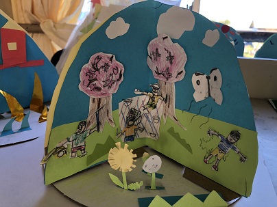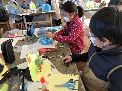 3年生は図工の学習で「くるくるランド」を作成しています。