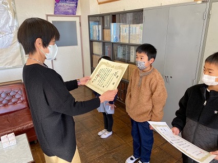 夏休みに挑戦した課題で賞をいただいた子どもたちを校長室で表彰しました。校長室での表彰でも喜んでくれる子どもたちの笑顔が嬉しいです。