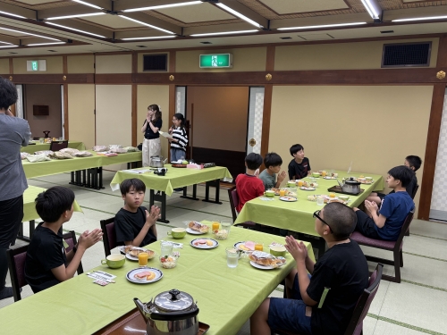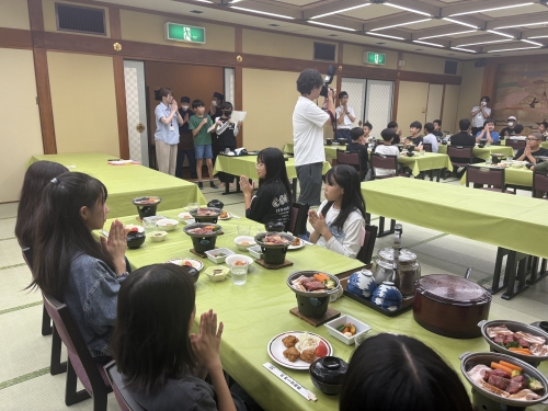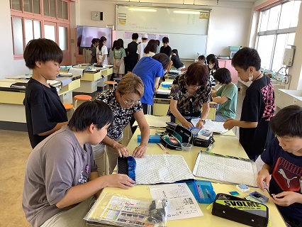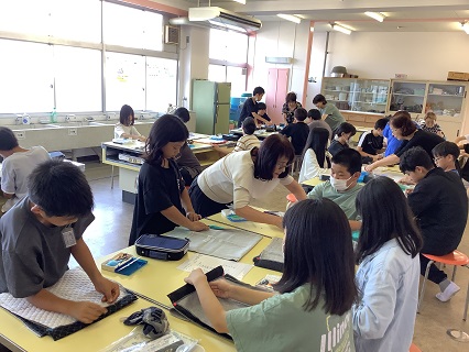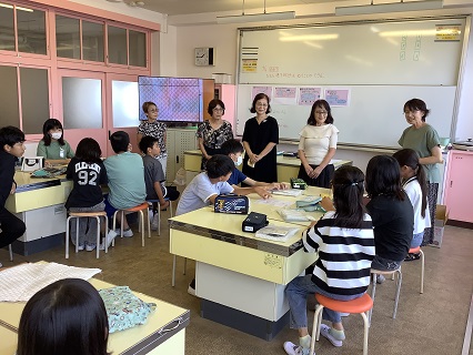 8月2日に第1回久居西中学校区人権サークルの活動がありました。栗葉小学校からは、5・6年生の児童8名が参加しました。いなば園の利用者さんとの交流を通して、お互いのことを知り合うという目的で行いました。3グループに分かれて、さをり織、折り紙、プラバンを一緒に作りました。交流会の最後に、参加者全員で「手のひらを太陽に」「さんぽ」を合唱しました。
