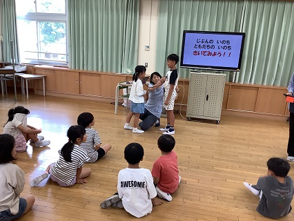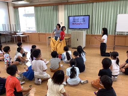 6月6日(火)4限目に、1年生の子どもたちを対象に誘拐防止教室を行ないました。