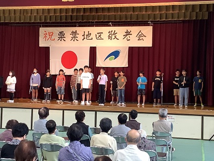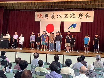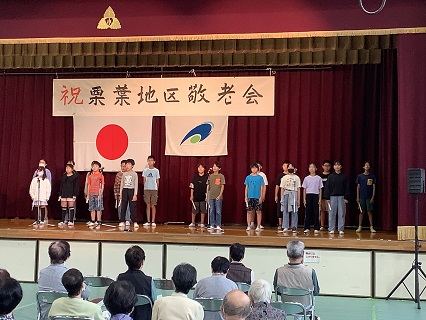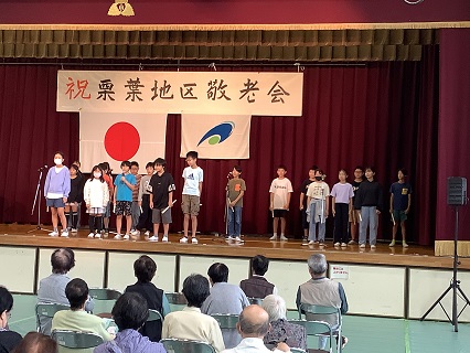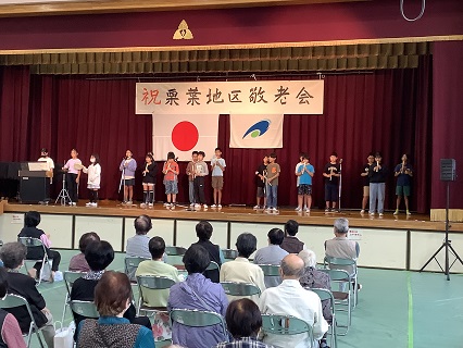 10月12日に5年生有志が、栗葉地区敬老会で「君をのせて(合唱)」「茶色の小びん(合奏)」を発表しました。子どもたちはとても緊張したと言っていましたが、心のこもった合唱・合奏でした。