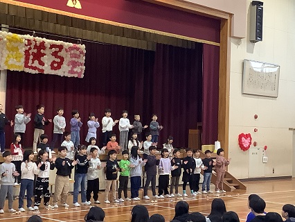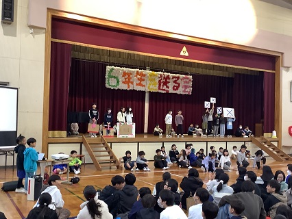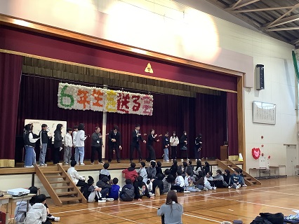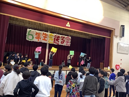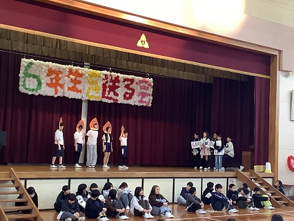 2月25日に「6年生を送る会」を開催しました。6年生に感謝の気持ちをいっぱい込めて考え、準備し、発表していました。5年生のみなさんが立派にあいさつや進行もしていて、6年生を送る会を盛り上げていました。どの学年も、6年生への感謝の気持ちがこもった内容で、しっかりと気持ちを伝えることができていました。