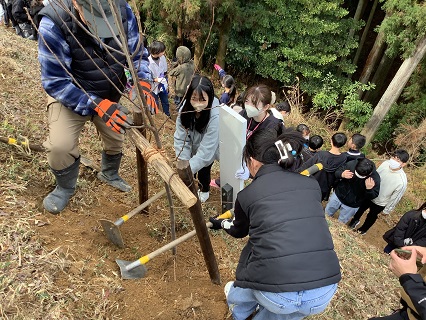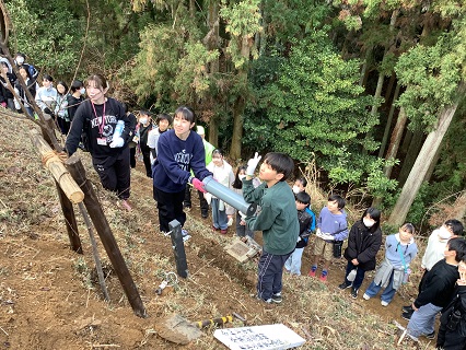2月27日(金)に、中村をよくしよう会、地域自治会、JAのみなさんにお世話になり、6年生が立石山に登り、卒業記念植樹を行いました。タイムカプセルも埋めました。タイムカプセルは、20歳を迎える年に開ける予定です。