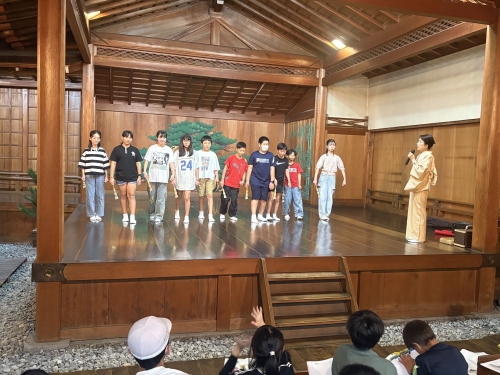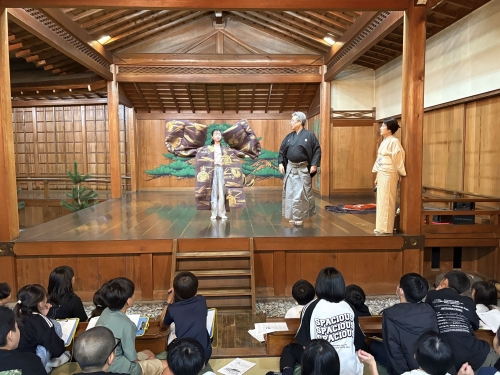 晴天のもと、2日目、最初の見学地、河村能舞台に出発です。