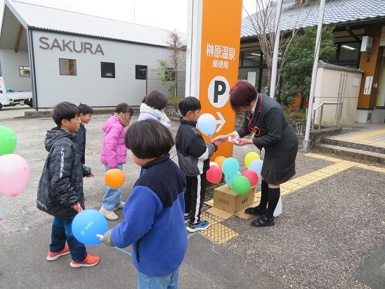 榊原郵便局では、局員さんが あたたかくお出迎えです。
