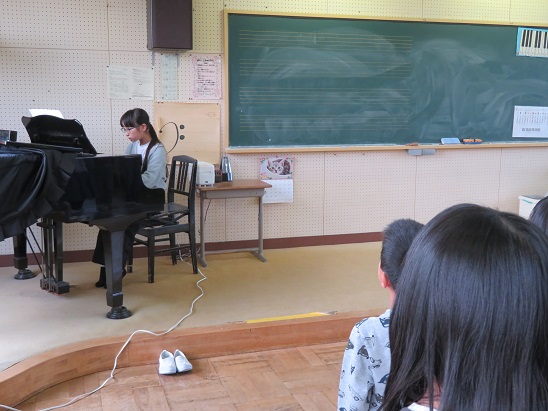 校歌のピアノ伴奏は、6年生が今回の終業式をめざして練習し、弾いてくれました。