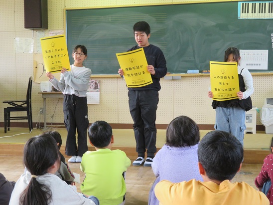 児童会から 冬休みの生活や過ごし方について お話がありました。