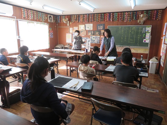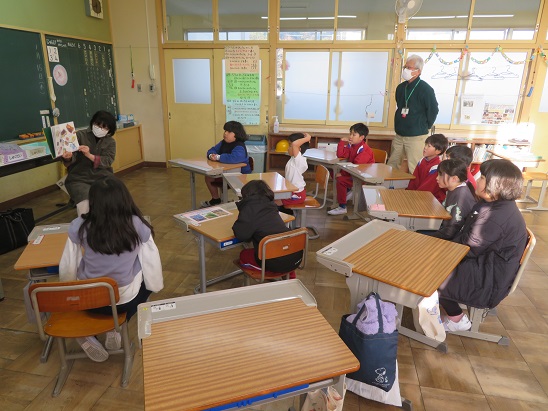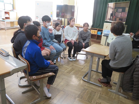 その後、教室では、担任の先生から 2学期をふり返ってのお話を聞きながら ひとりずつ 成績表を受け取っていました。