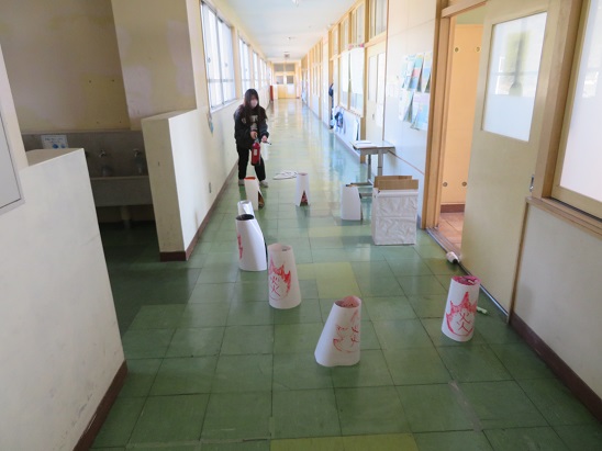 みんなで使った 給食の配膳台、今日 お休みしてしまった友だちの机も きれいにしていました。