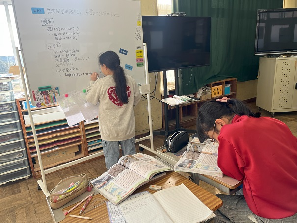 2学期に 子どもたちみんなが あきらめずに がんばってきた姿や 力いっぱいやり切った行事・思い出いっぱいのできごと等の写真を見ながら ふり返りました。