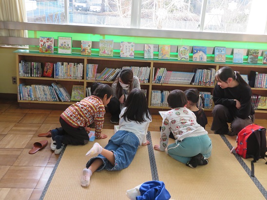 図書室にもどってから おうちの方たちのお話が終わるのを 静かに待っています。
