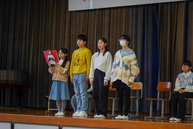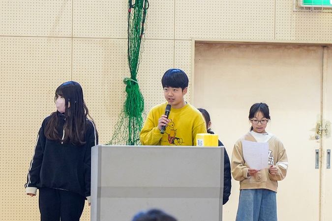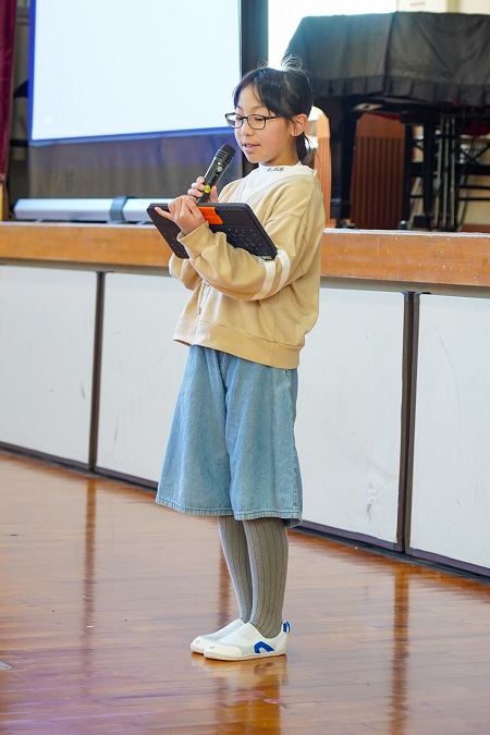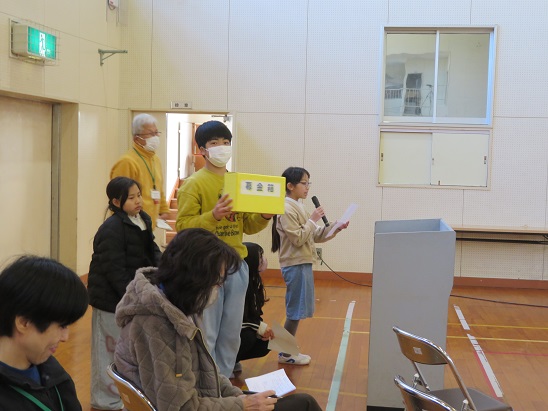 休憩時間には、児童会から 会場のみなさんに、募金を よびかけていました。