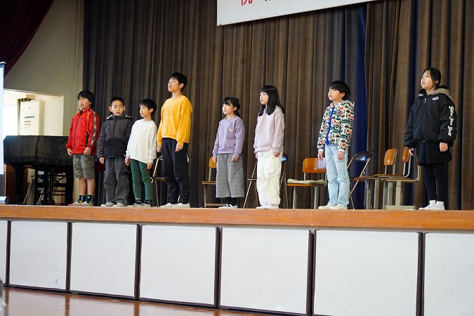 6年生児童の伴奏で、元気に校歌を歌いました。