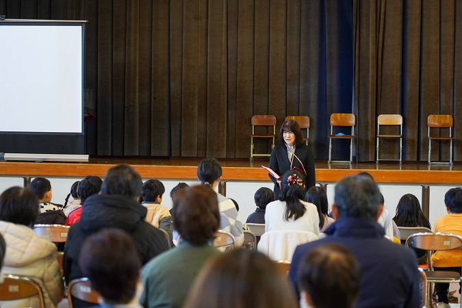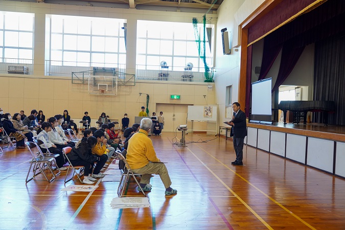 演題は「自分のことは 自分で認める(自認)」で、5・6年生も いっしょに お話を 聞きました。