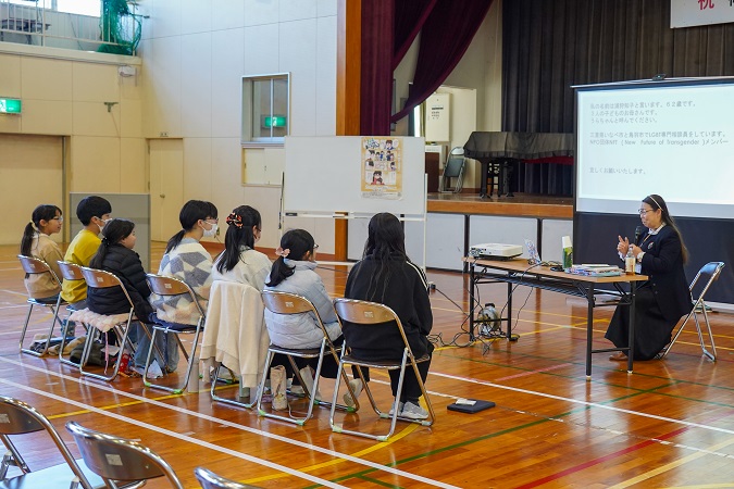 午後からは、1~4年生を対象に、「エミちゃんが サクくんになった本当のおはなし」を 小さい子たちにも わかりやすい言葉で お話しいただきました。