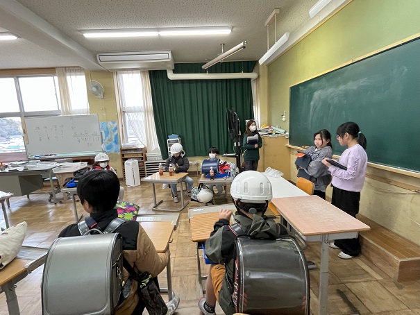 明小学校の子たちの入りたい部活も聞きながら、Nice!やGood!などとリアクションし、時には「へぇ、サッカー部があるんや。」などと驚いていました。