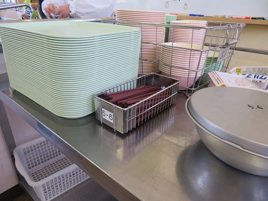 学年に合わせて量を調整しながら、段取りよく配膳していきます。さすがです!