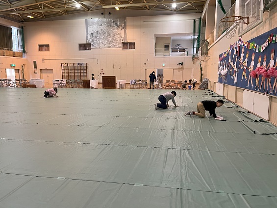 みんなで声をかけ合い、協力して  会場が  出来上がりました。