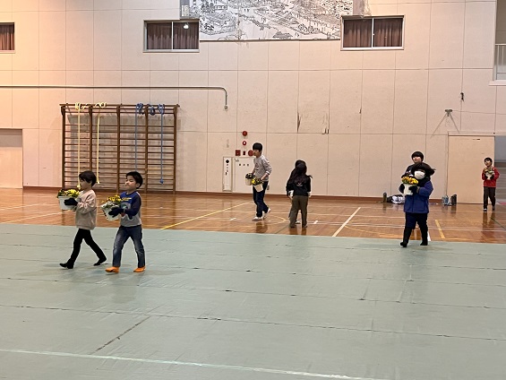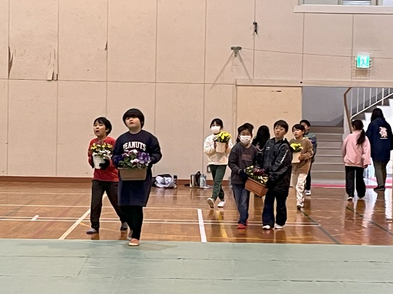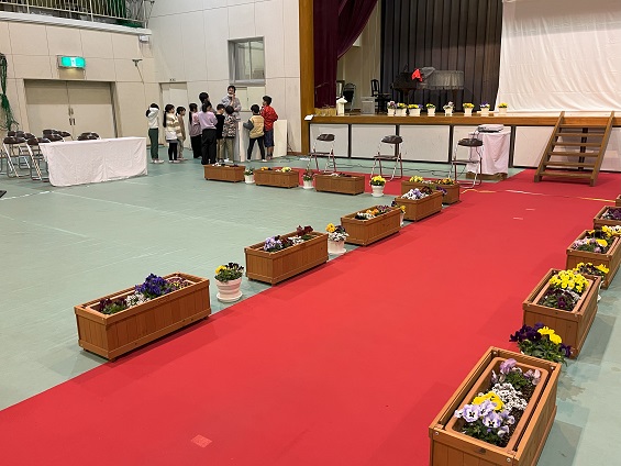 1・2年生も 会場の周りをきれいにしたり、お花を運んだりして 準備に参加します。