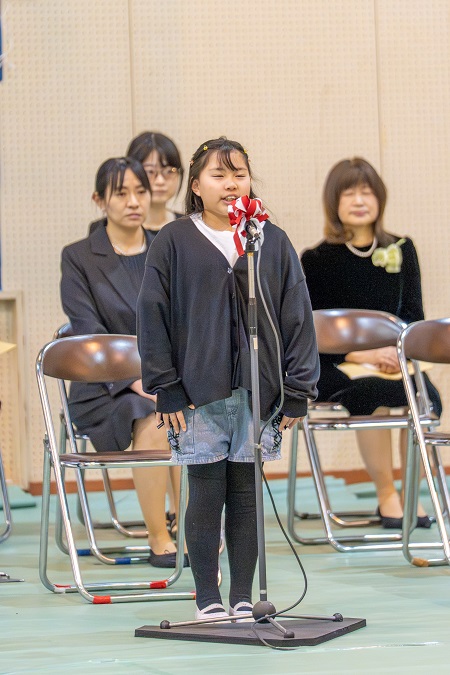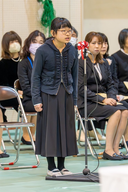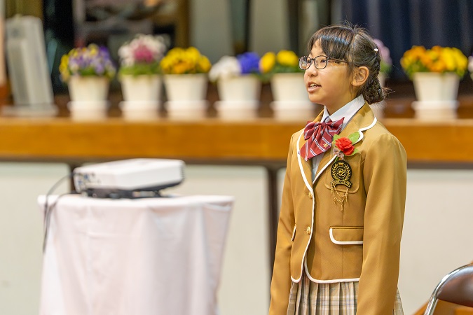 代表して 6年生から メッセージを お渡ししました。