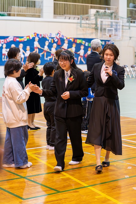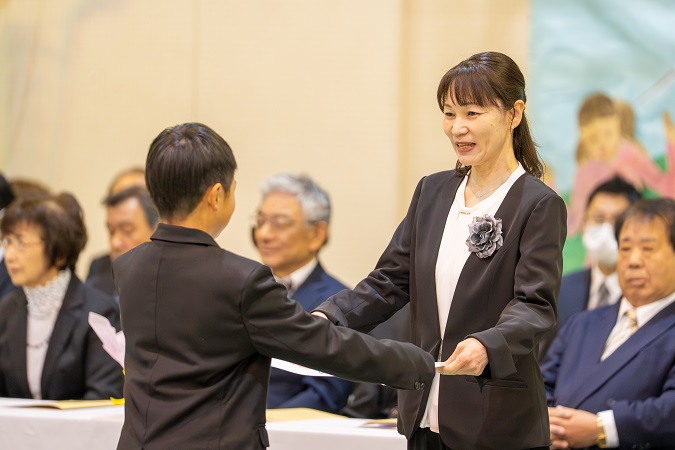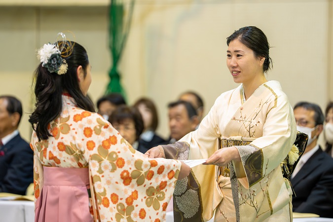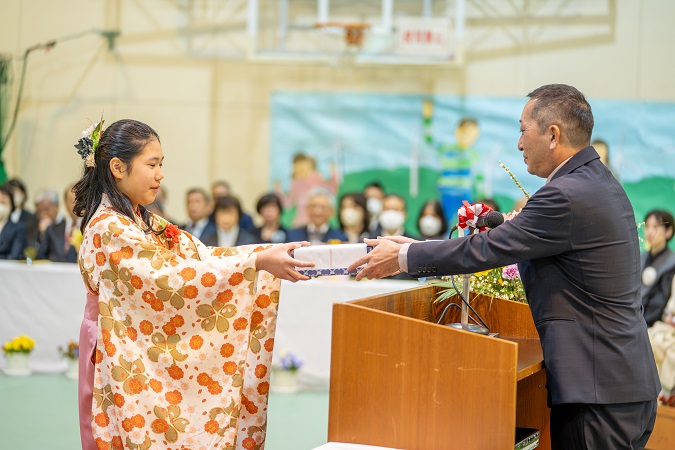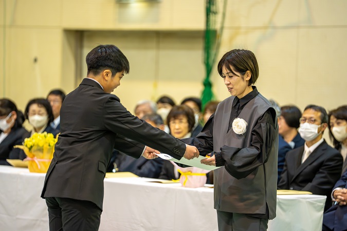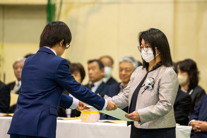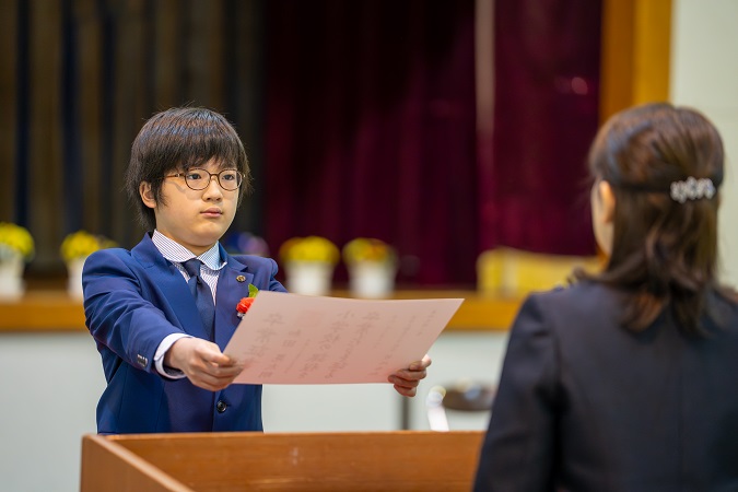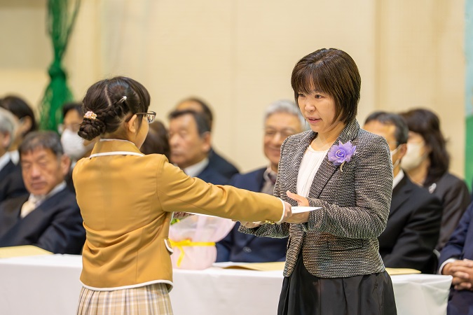 卒業証書を受け取り、大切に育ててくださった 保護者の方に 感謝の気持ちとともに 証書を手渡します。