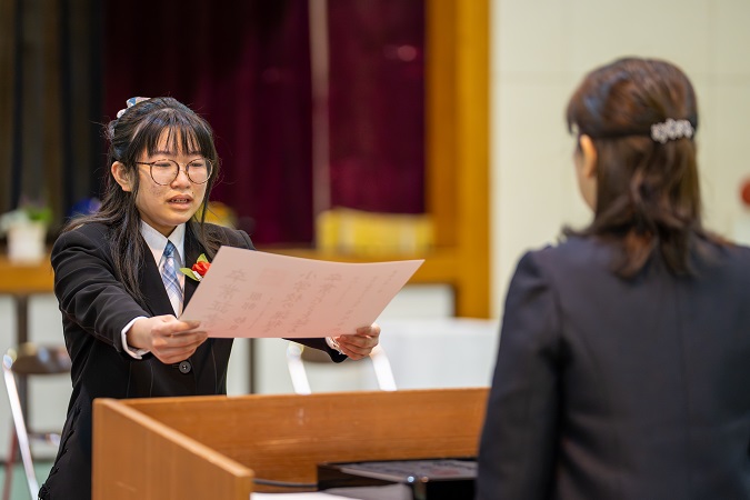 これからの自分の生き方を堂々と伝える卒業生。