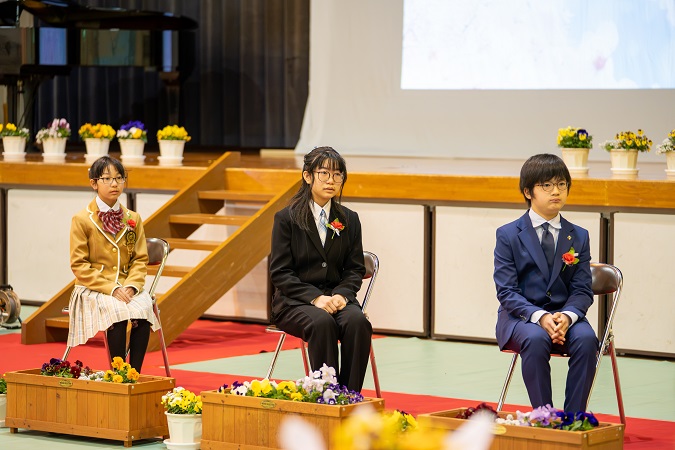 式歌は 体育館いっぱいに歌声が響き、感動的でした。