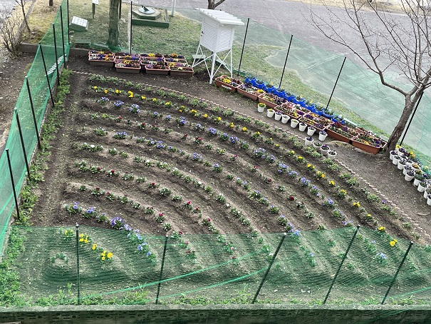 花壇の花も、だんだんと開いて、卒業をお祝いしているようです。
