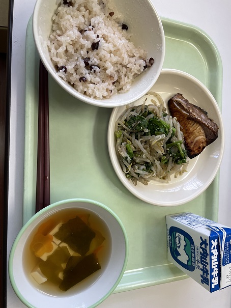 今年度 最後の給食は、卒業・進級お祝い給食。とってもおいしい赤飯でした!