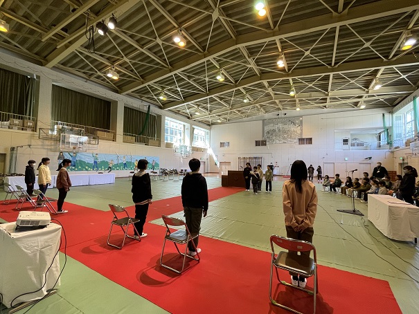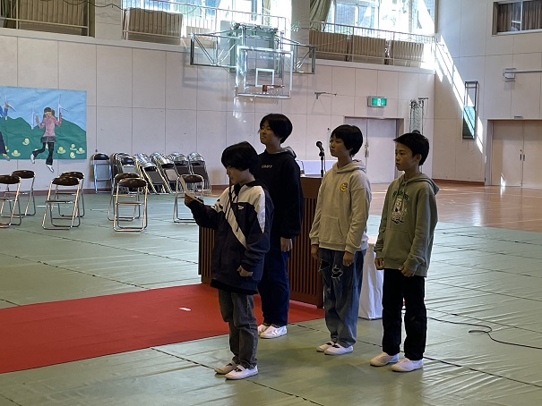 明日の卒業式を控え、最後の全校練習の後に、5年生からメッセージ。