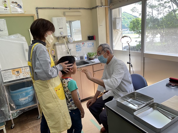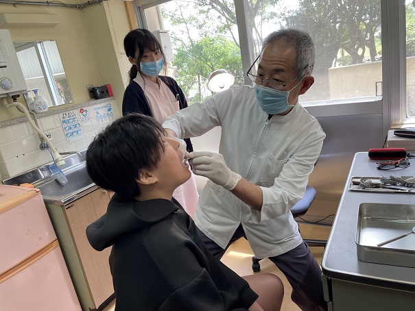雨で延期になった避難訓練も無事終わり、引き続き歯科検診です。