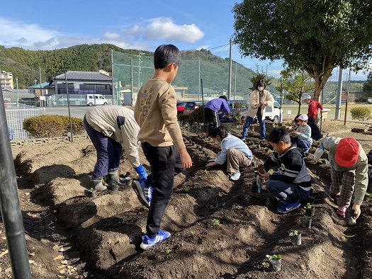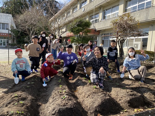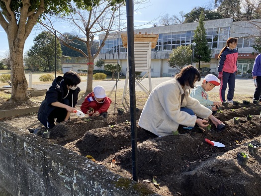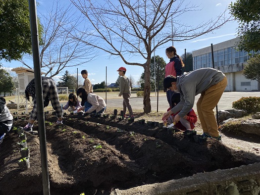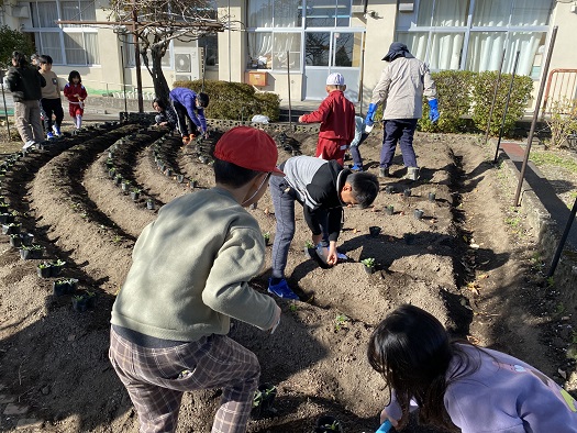 校長先生が放送で チューリップの球根と花の苗を植えるお手伝いを募ったところ