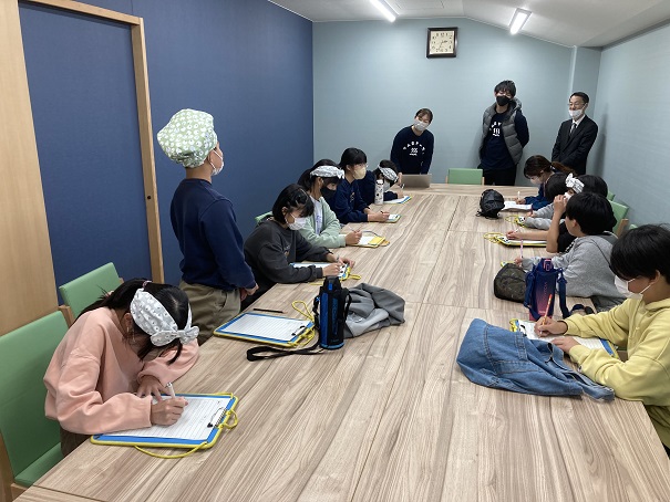 館内放送で、「今日は榊原小学校の5・6年生が職業体験に来ています。」
