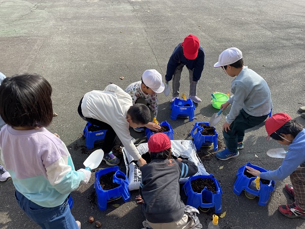 赤塚植物園さんからいただいた立派な球根を、一人3つずつ選びます。