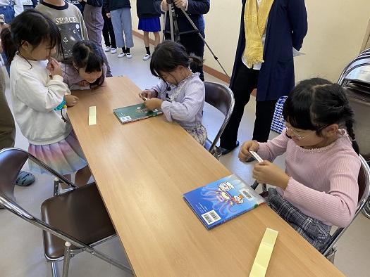 いただいた本に みんなが交代で 「ミキプルーン文庫」の