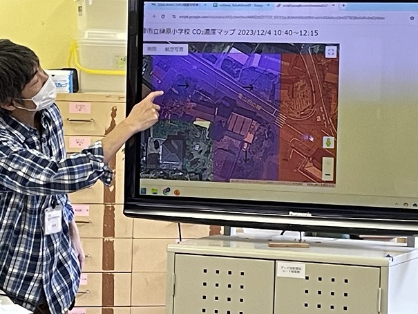 学校周辺のCO₂濃度が色分けされて出てきました。
