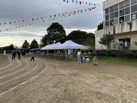 朝早くから 地域の体育振興会の方々に集まっていただき、準備をしました。