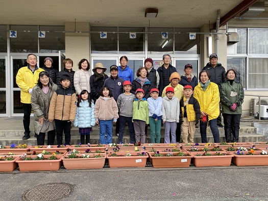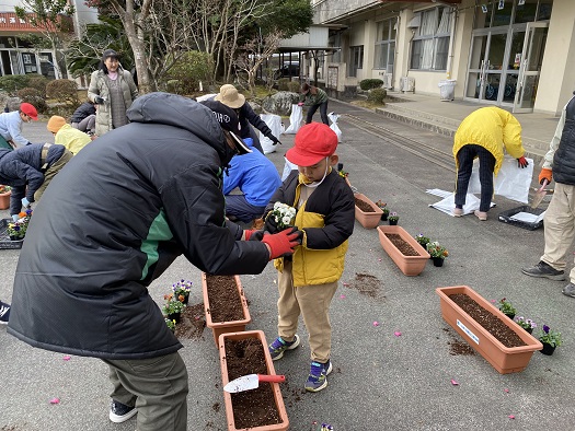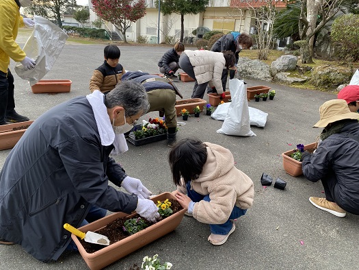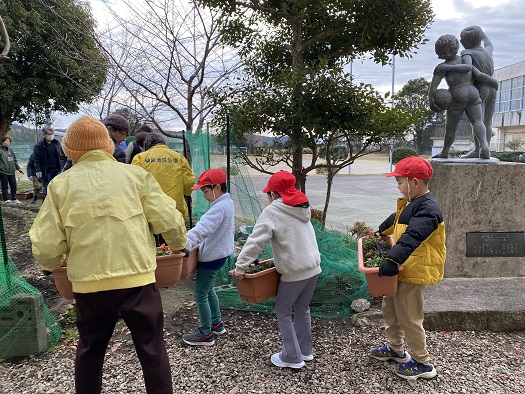 今日は 1・2年生が あいあい榊原さんと一緒に 花の苗植え活動です。