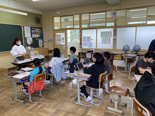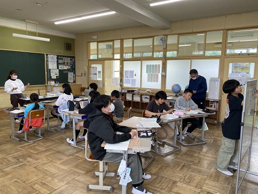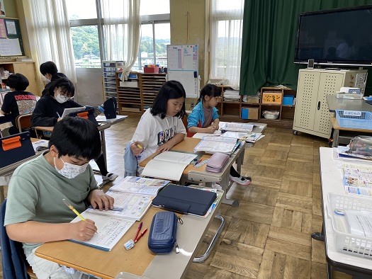 1つの教室で、5年生と6年生が別々に勉強をする「わたり」の授業。