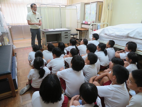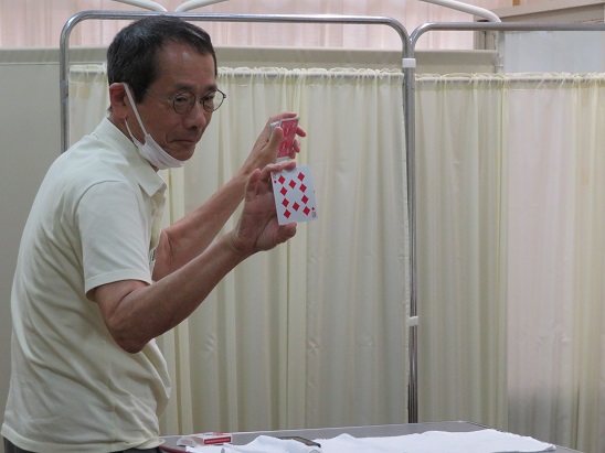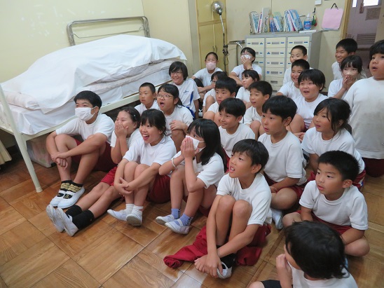 検診前には 校医の上野先生から いつも子どもたちが楽しみにしている 手品の披露です。