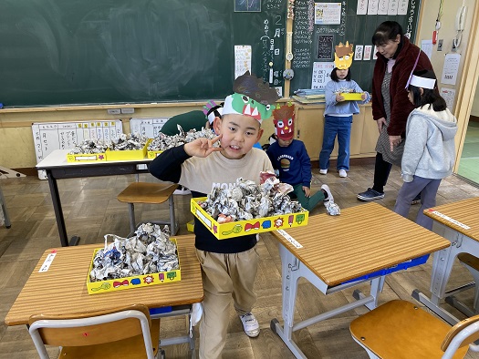 1・2年生教室には かわいい 小オニさんたち。