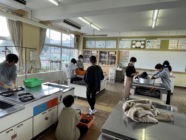 家庭科室は、家庭科の授業の5年生も一緒にコンロを中心に磨いていました。