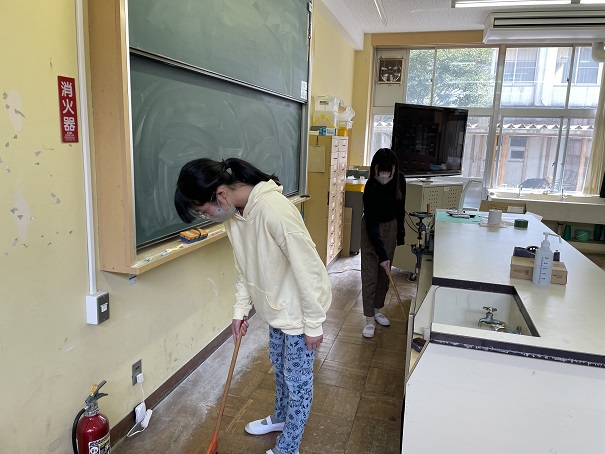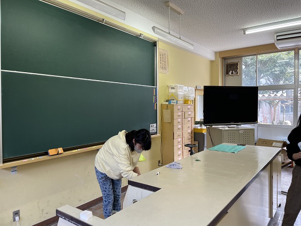 2人ずつ分担して、日頃十分掃除ができない特別教室をきれいにしました。