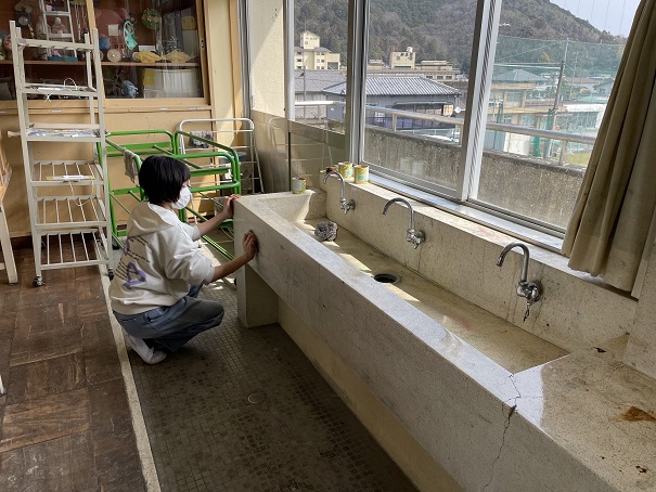 手洗い場は、絵の具などのシミもきれいになりました。