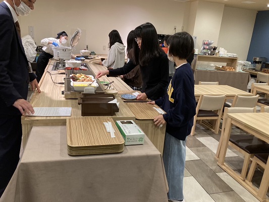 朝ごはんは 京風御膳に加え、スクランブルエッグや唐揚げ、